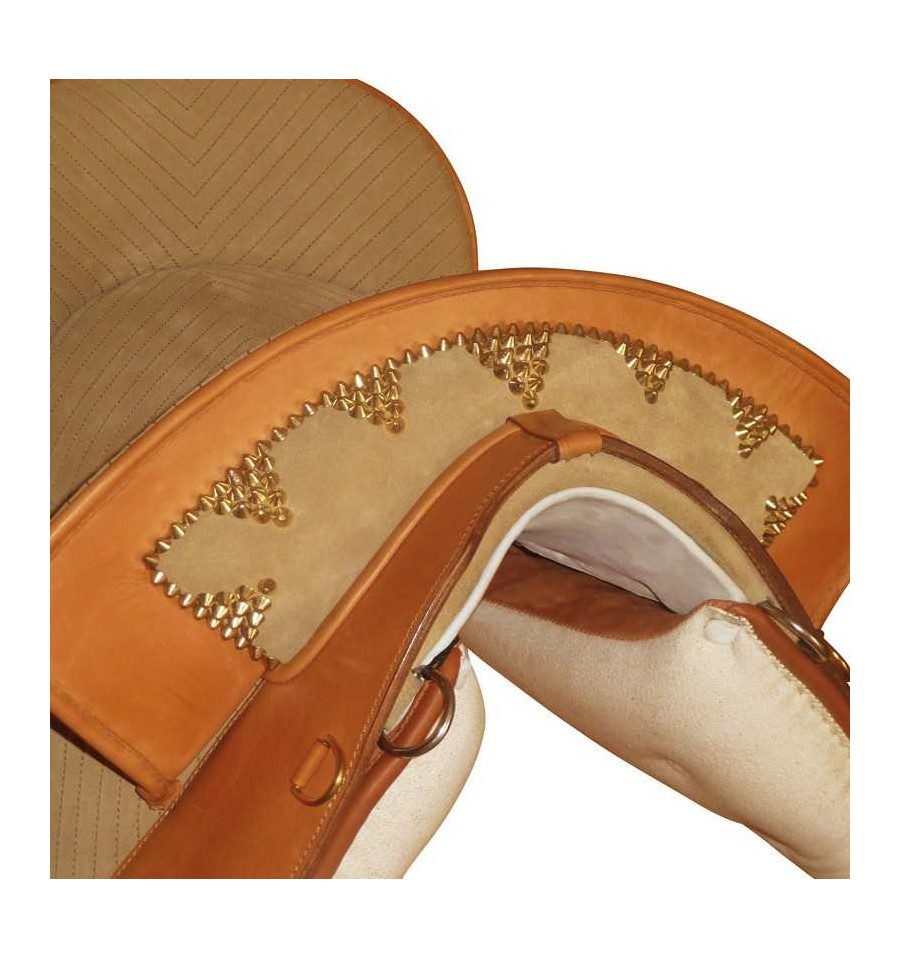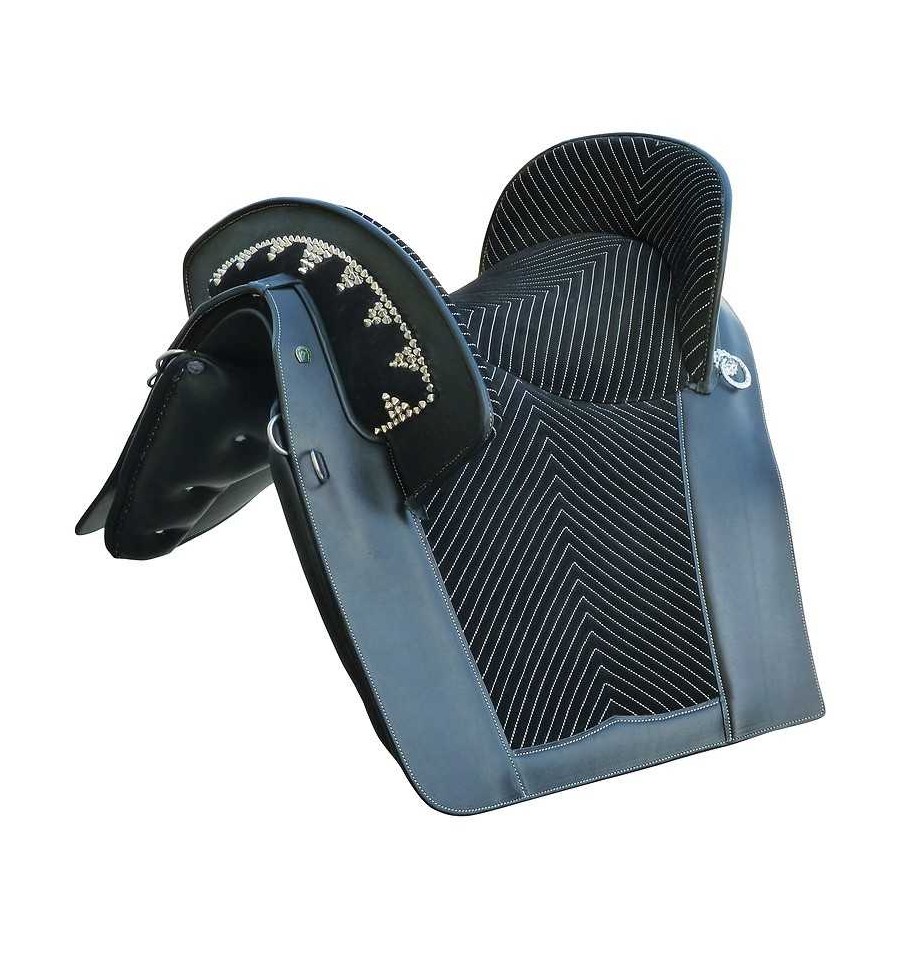 Montura mixta portuguesa de cuero sillero de curtición vegetal combinado con ante, fabricada por Marjoman.