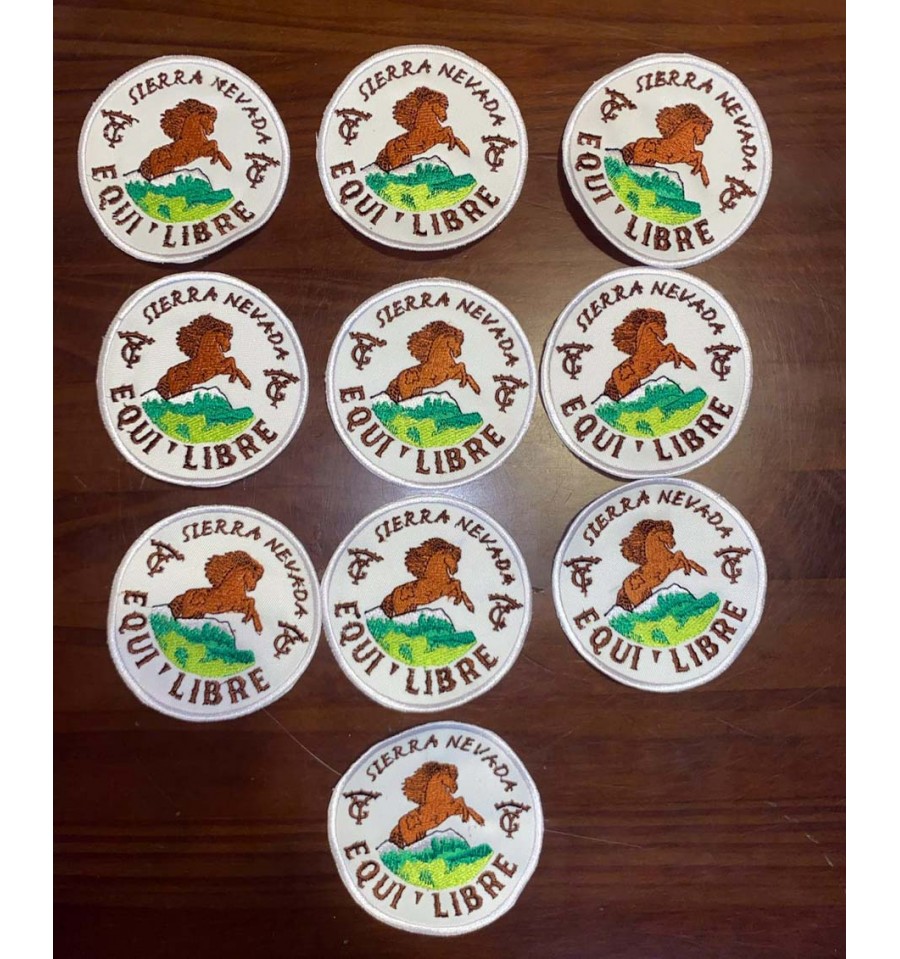 Parche bordado para sudaderos, Ropa de equitación o equipamiento deportivo. Pedido Mínimo 10 unidades. Los Hierros o dibujos han de ir con un color de fondo negro o blanco